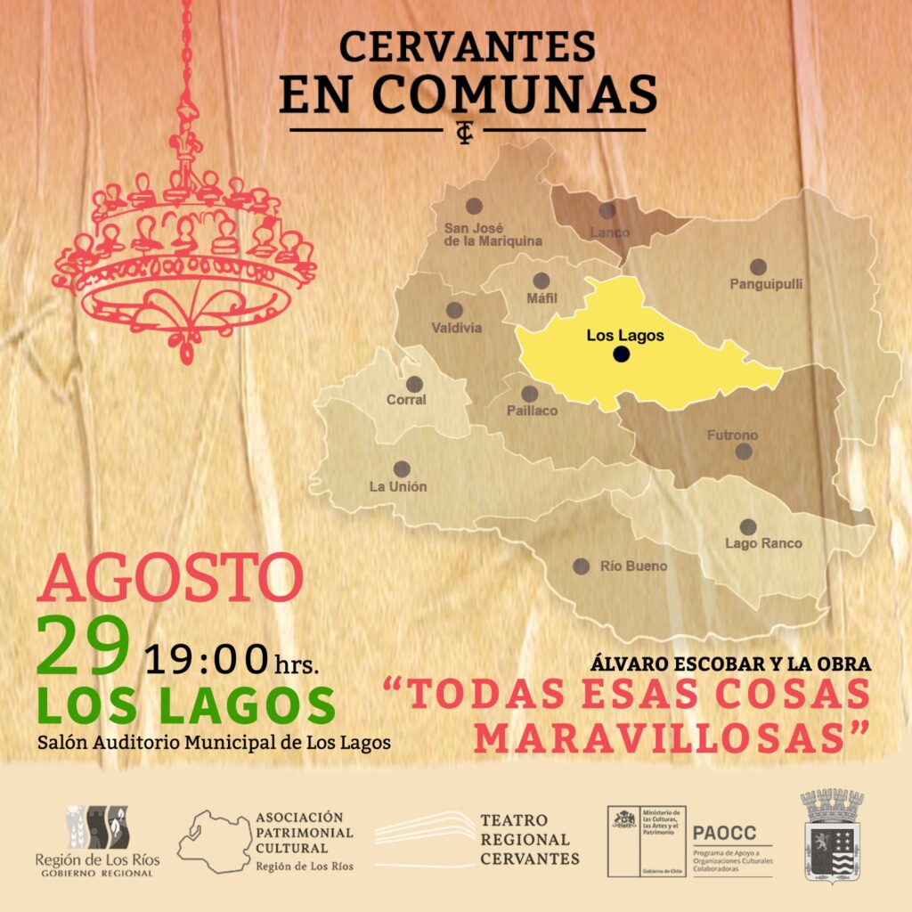 - Todas esas Cosas Maravillosas: La notable intervención teatral del dramaturgo inglés Duncan Macmillan, Todas esas cosas maravillosas, llega de la mano del actor nacional Álvaro Escobar. Catalogada como “la obra más entretenida que jamás verás acerca de la depresión”