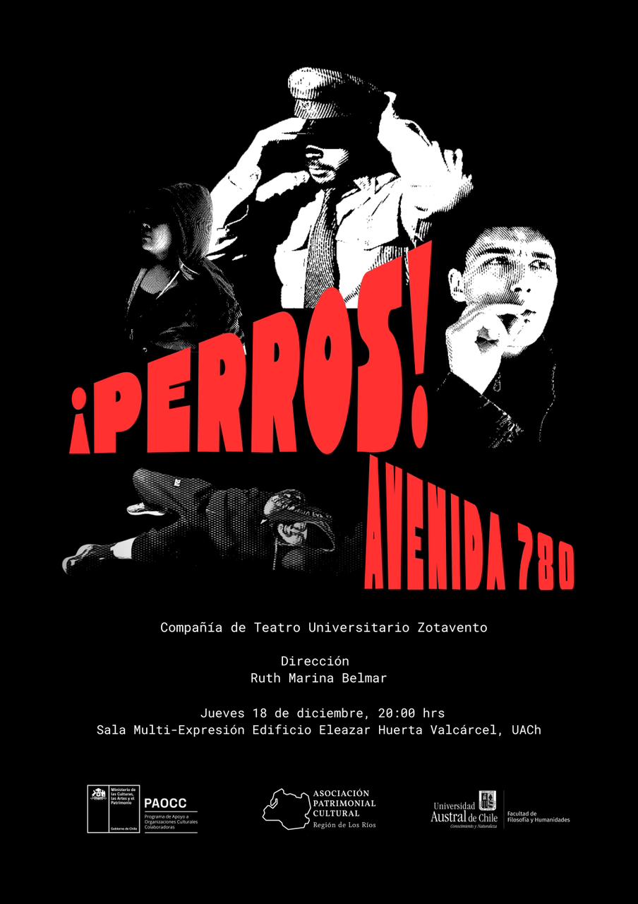 La primera presentación se realizará en Valdivia con el estreno de la obra ¡PERROS! Avenida 780, de la Compañía de Teatro Universitario Zotavento. La dramaturgia, cuyo origen surge del trabajo creativo de Joaquín Antonio Vargas Quintana, aborda problemáticas sociales contemporáneas como la marginalidad juvenil y la violencia simbólica. La obra narra la historia de un grupo de jóvenes abandonados por la sociedad que, marcados por el dolor y el estigma, ejecutaron en el pasado un supuesto “crimen perfecto” contra quien los sometió a tortura psicológica y los calificó de “anormales”, dejando una huella irreversible en sus vidas.