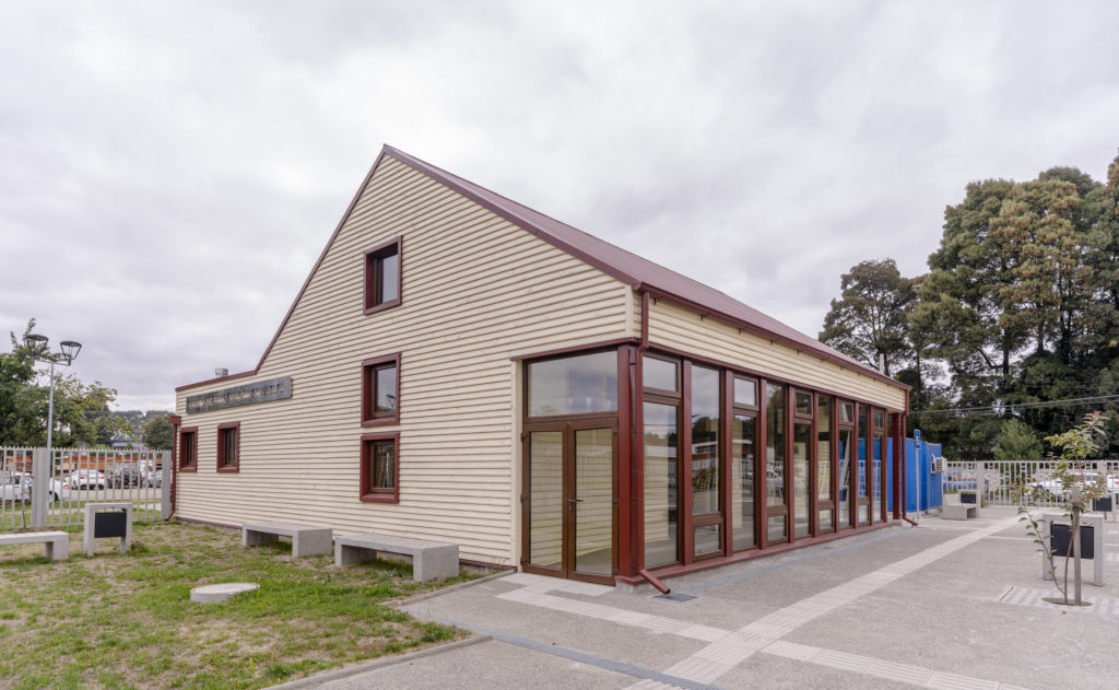 Teatro Galia, en la comuna de Lanco y la Estación Collilelfu, en Los Lagos. Hoy funciona como centro cultural.