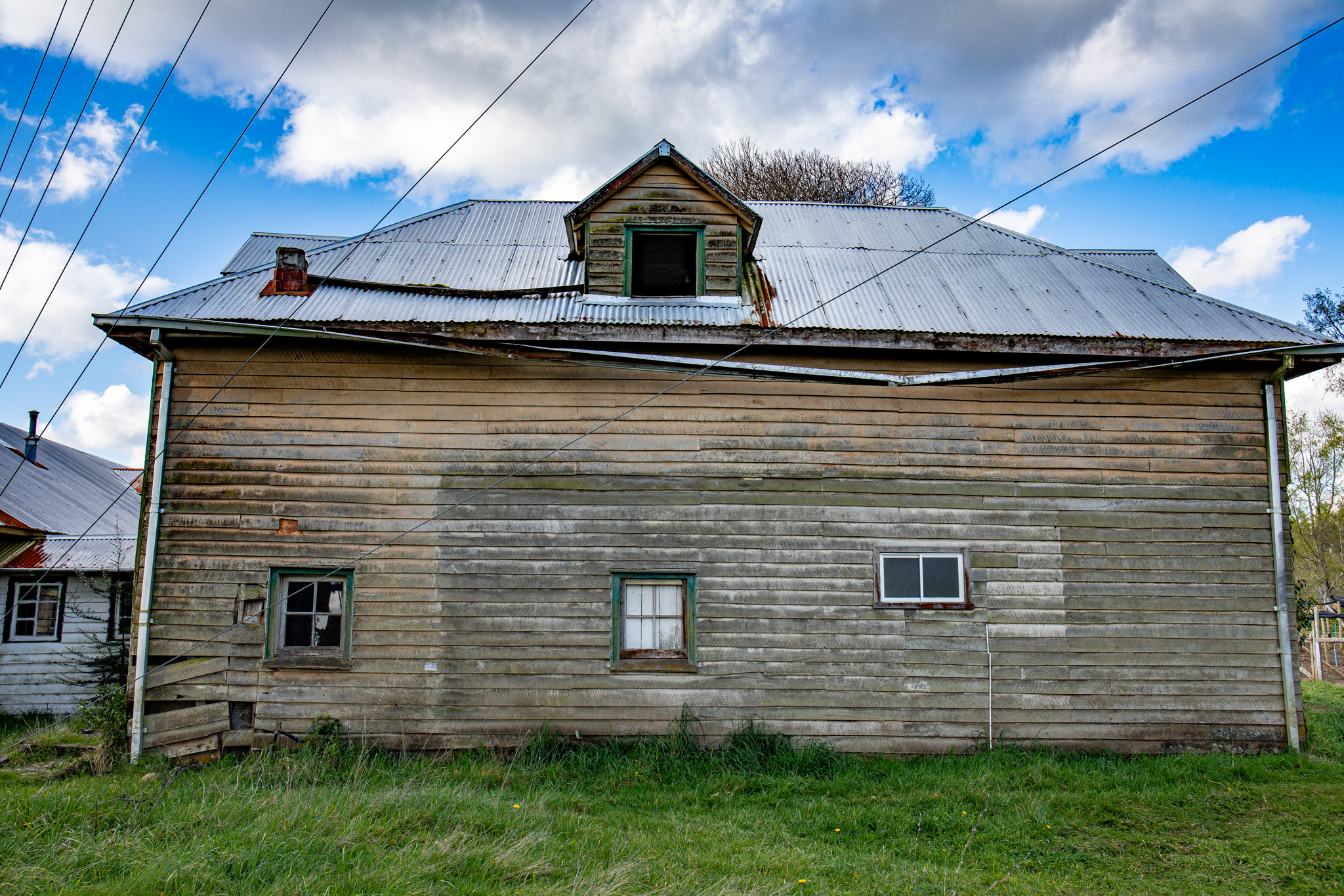 Bienes y valores patrimoniales con los que cuenta la localidad de Loncopán. De izquierda a derecha: Galpón, Casa Patronal y ex retén de Carabineros -en la actualidad funciona como Escuela-.