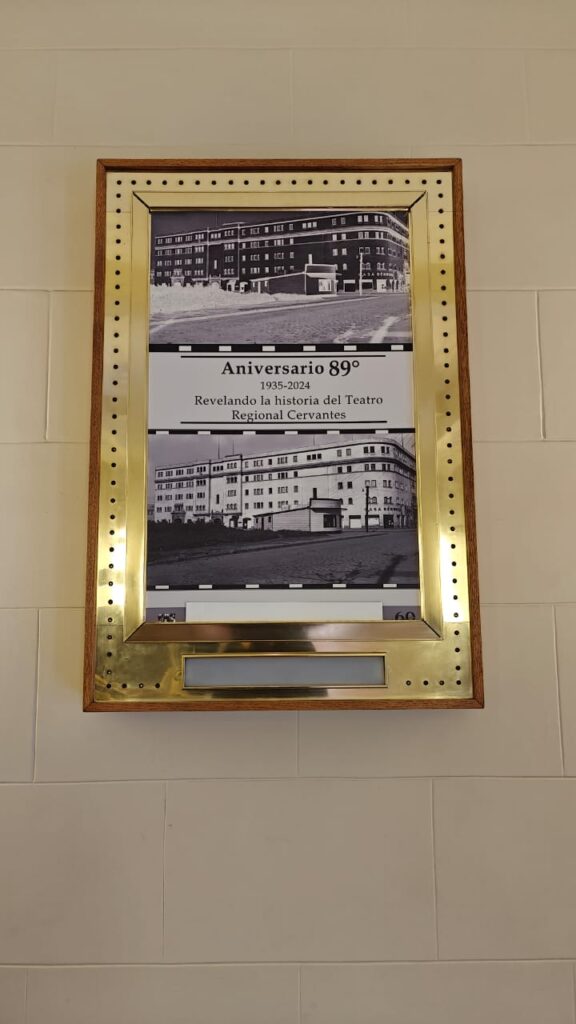En el hall del tradicional recinto cultural, que actualmente se encuentra cumpliendo 89 años de existencia, se puede apreciar una histórica exposición sobre el Cervantes que cuenta con distintos artículos tales como sombreros, instrumentos, cámara fotográfica, partituras, entre otros, que transportan a los visitantes a un viaje a través de espacio y tiempo. La muestra también contempla fotografías de la época y diversos testimonios interactivos de personas que alguna vez pasaron por las salas del antiguo Cine Cervantes.