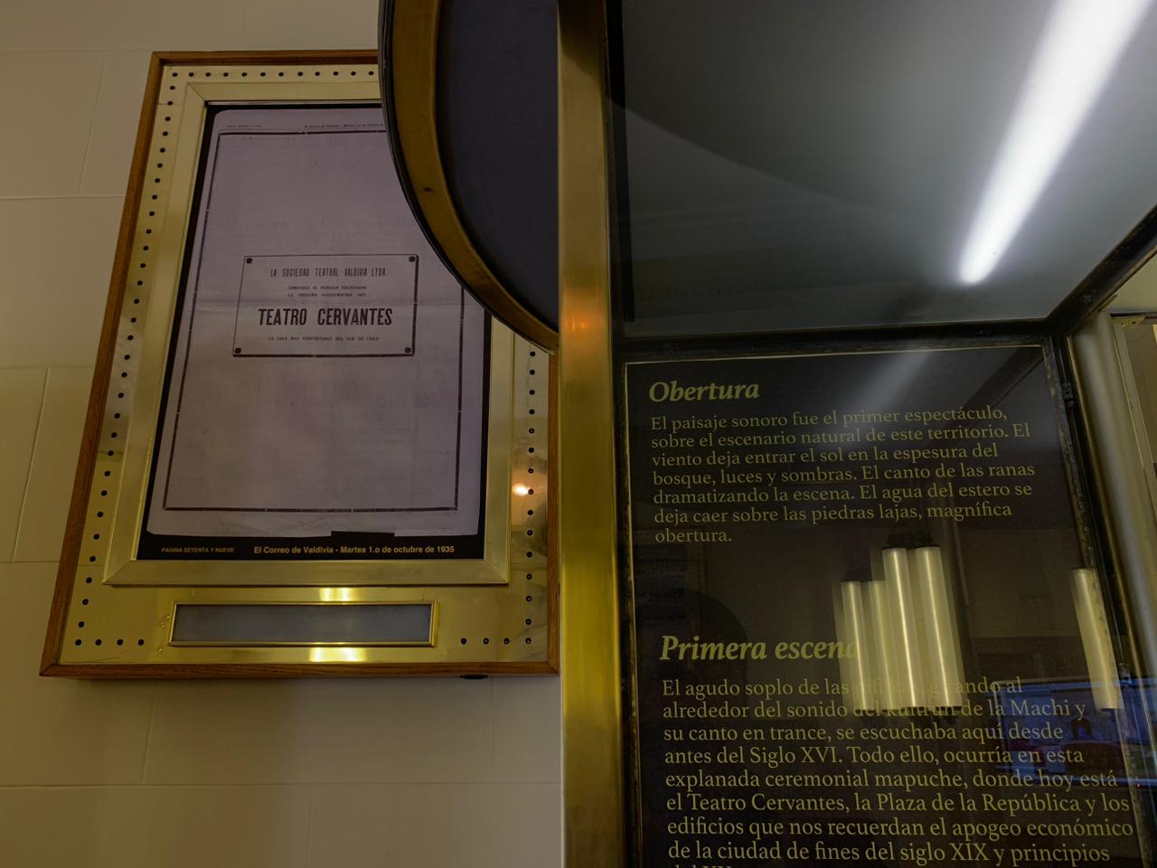 En el hall del tradicional recinto cultural, que actualmente se encuentra cumpliendo 89 años de existencia, se puede apreciar una histórica exposición sobre el Cervantes que cuenta con distintos artículos tales como sombreros, instrumentos, cámara fotográfica, partituras, entre otros, que transportan a los visitantes a un viaje a través de espacio y tiempo. La muestra también contempla fotografías de la época y diversos testimonios interactivos de personas que alguna vez pasaron por las salas del antiguo Cine Cervantes.