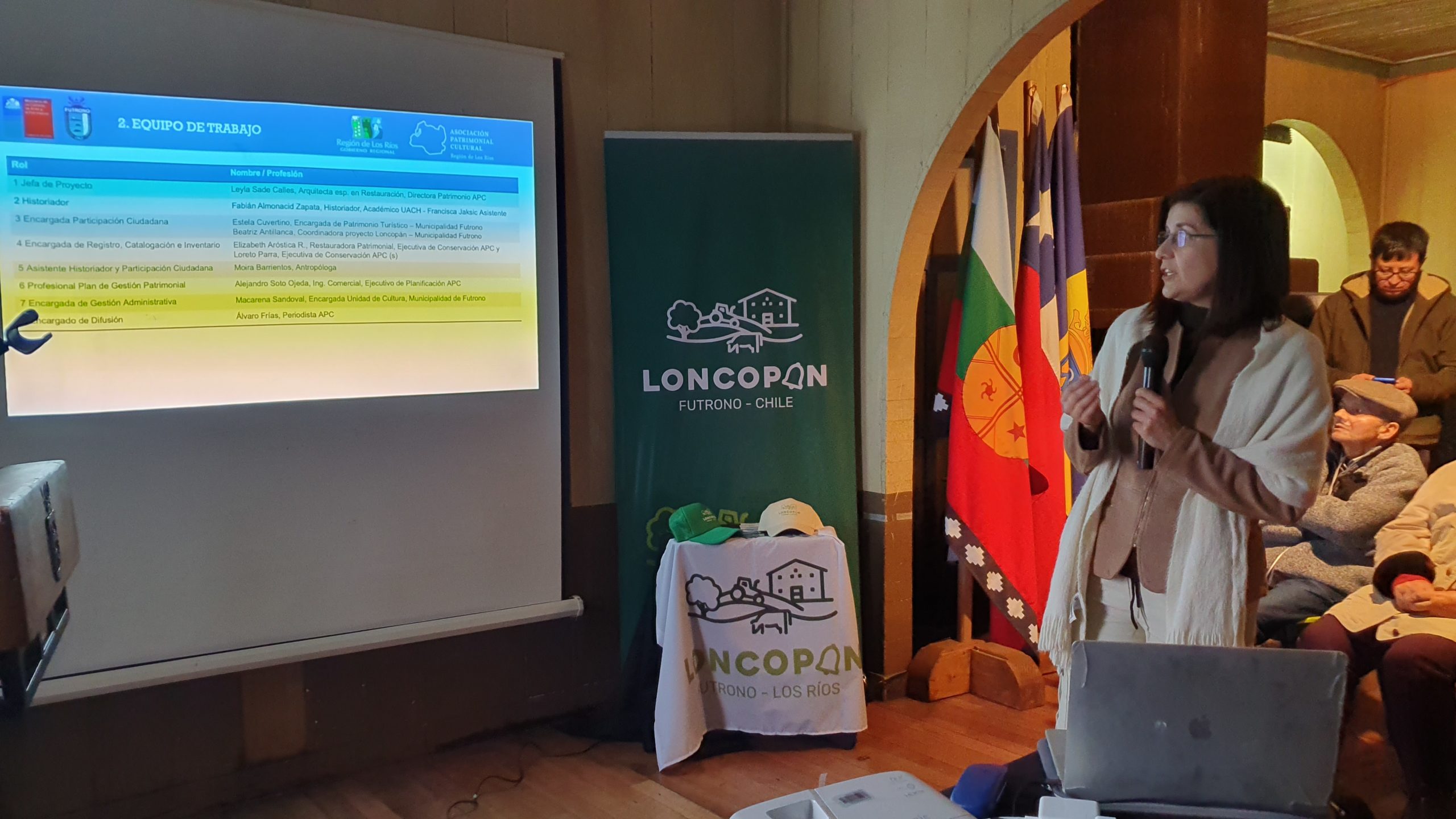 En la instancia, que contó con una amplia convocatoria de los habitantes del sector, la arquitecta y directora de Patrimonio de la Asociación Patrimonial Cultural de la Región de Los Ríos, Leyla Sade, presentó los resultados del estudio, indicando que “éste nos permite conocer en detalle la historia de esta localidad, que luego de ser adquirida en la década de los años ´20 por el arquitecto Benigno Saa Pinto, pasó a transformarse en una hacienda, muy distinta a los fundos del sur de aquella época, donde destaca la jerarquización propia de éstas”. Agregó que “así comienza el desarrollo de Loncopán, donde también se construyen bienes inmuebles imponentes para el sector y que hoy en día cuentan con un alto valor patrimonial”. Entre estos podemos destacar: el Ex Retén de carabineros (actual Escuela Rural de Loncopán Bajo); Casona Patronal (que en sus últimos años fuera la Escuela de Loncopán Alto); el Antiguo Galpón del Fundo Loncopán y un tipología de vivienda rural que imprime un sello característico a la zona. La hacienda perduraría en su administración original hasta 1969, año en que comenzó la Reforma Agraria y que daría paso a la expropiación de los terrenos y la división del fundo en 52 parcelas. La arquitecta aprovechó la oportunidad para agradecer la participación de los miembros de la comunidad, cuyos testimonios fueron claves para construir en detalle la historia de esta ex hacienda.