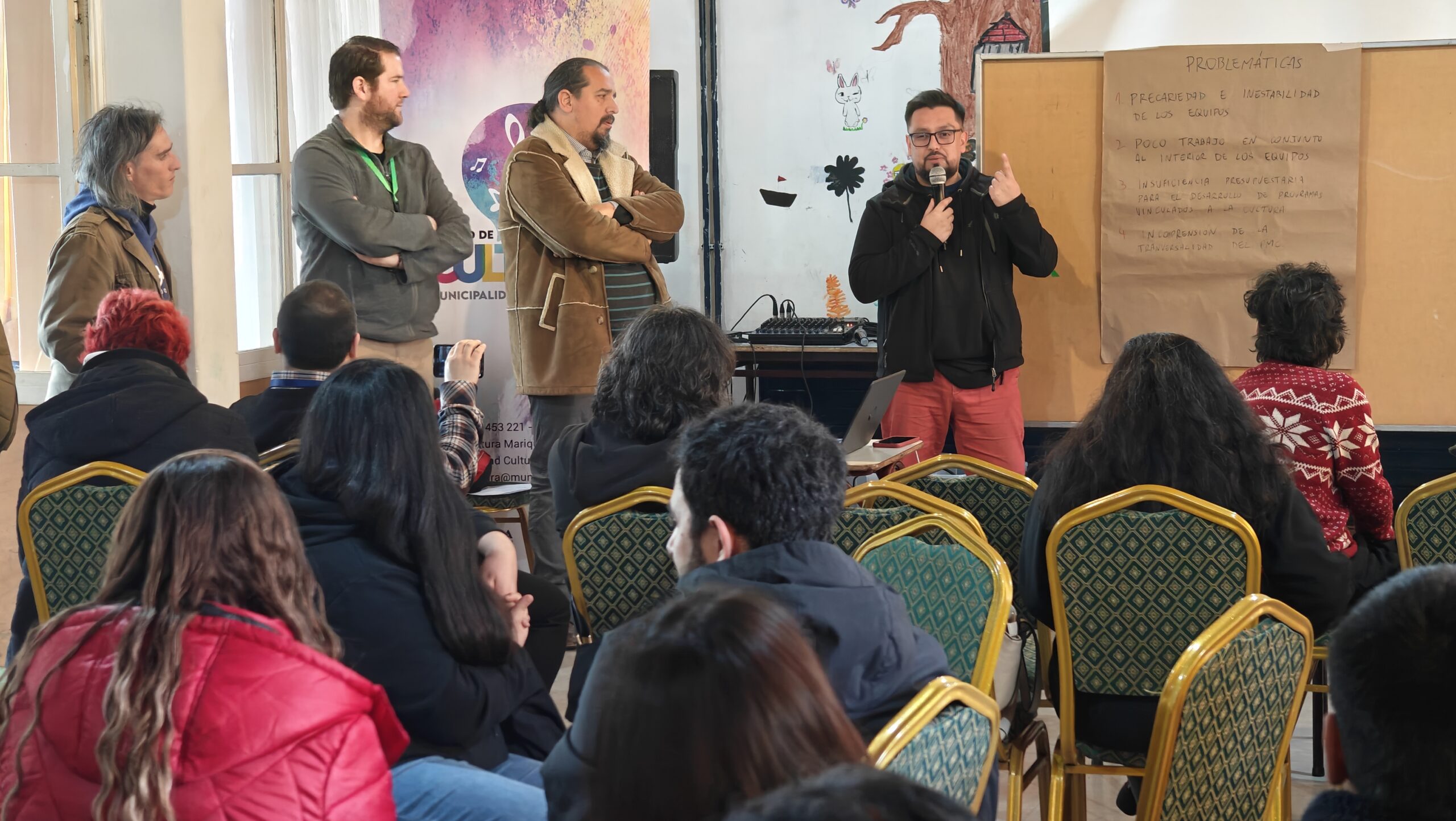 Durante el encuentro se trataron diversas temáticas que fueron expuestas por: Alexi Pérez, Coordinador de Planificación Seremi de las Culturas, las Artes y el Patrimonio quien presentó la Estrategia