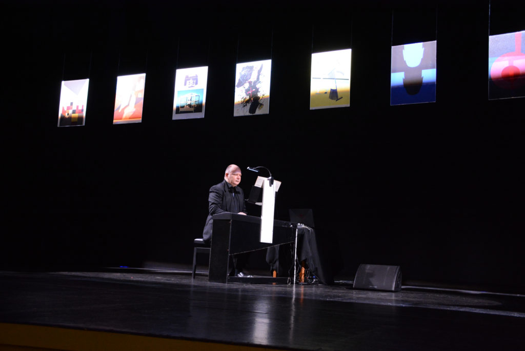 La muestra artística estuvo a cargo del maestro Armand Abols, quien interpretó una selección de poemas sinfónicos de “Cuadros de una Exposición”, realizada en 1874 por el compositor ruso Modest Mussorgsky (1839–1881) e inspirada probablemente en diez cuadros realizados por el arquitecto y artista ruso Viktor Hartmann (1834–1873), muy amigo del músico. Esta pieza acompañó la exhibición de reproducciones de obras en alta calidad de artistas chilenos contemporáneos pertenecientes a diversas generaciones como lo son Mario Carreño, Rodolfo Opazo, Eduardo Vilches, Guillermo Núñez, Carmen Piamonte, Gonzalo Cienfuegos, Loreto Greve, Ricardo Yrarrázaval, Patricia Schuler, Guillermo Lorca, Lorena Villablanca, Francisco Smythe, Paulina Humeres, Gabriela Guzmán, Daniela Sandoval y Carlos Escuvier.