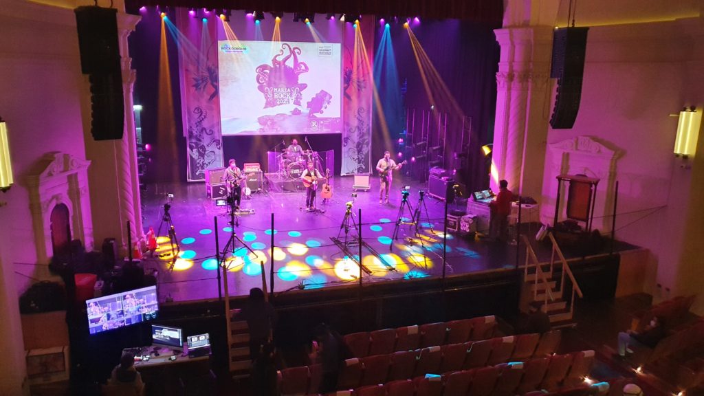 Días de rock se vivieron en el escenario del Teatro Regional Cervantes con la grabación del Festival Marea Rock, que será transmitido a través de streaming en diciembre próximo a través de las plataformas digitales del Ministerio del las Culturas, las Artes y el Patrimonio. El evento, que se enmarca en una nueva versión del Festival Rockódromo, convocó a un total de diez bandas que durante los días martes 7 y miércoles 8 de septiembre desplegaron todo su talento musical ante las cámaras de filmación. Los participantes fueron: “Monvel”, “Entrerulos”, “Del Monte al Mar”, “Peregrino”, “Amaranth”, “Lucípetos”, “Porotos kon Rienda”, “Chola y Gitano”, “Elliot” y “Astromelia”.