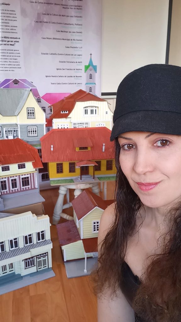 Así fue la génesis de sus primeros trabajos, los cuales fueron retablos de casas típicas de la ciudad de Osorno. “Después de esa experiencia, nace la idea de postular a un Fondart Regional para hacer algo un poquito más grande y si bien la primera vez no me lo adjudiqué, la segunda fue la vencida”, cuenta. ¿El resultado? Maravillosos y minuciosos retablos de Monumentos Nacionales de la Región de Los Ríos, donde destacan el Museo Histórico y Antropológico Maurice Van de Maele, Valdivia; la Estación Collilelfu, Los Lagos; la Casona del Fundo El Llolly, Paillaco; Casa de la Cultura, Máfil; Teatro Galia, Lanco, la Iglesia de Nuestra Señora de Lourdes, Paillaco; Iglesia San Francisco, Valdivia; Casa Machmar; Río Bueno; Estación Ferroviaria, Máfil; Casa Peters; Río Bueno; y la Casa Prochelle I y II, Valdivia.